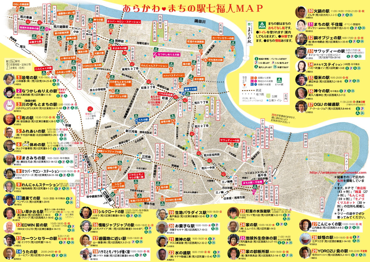 終了 あらかわまちの駅七福人ウォークラリー 2017年5月20日〜6月3日 2017年のイベントは、まちの駅の駅長さん7人に会って福をもらうイベントです。まちの駅でシールを7つあつめた、先着60名様にプレゼントを進呈しました。 主催:あらかわ区まちの駅ネットワーク 後援:荒川区 主催 あらかわ区まちの駅ネットワーク 後援 荒川区 イベント資料